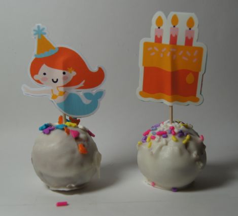 For coating, I use the Almond Bark from WalMart. and usually sprinkles. I don't usually put them on sticks, instead I put cupcake toppers on them.